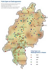 Karten zur Geografie der Siedlungsnamen in Hessen