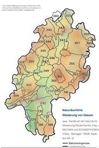 Die Bezeichnungen für die naturräumliche Gliederung Hessens.
